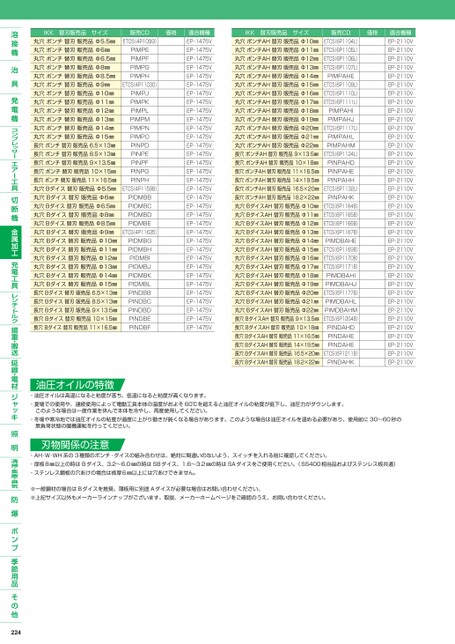 IKK替刃販売品サイズ販売CD価格丸穴ポンチ替刃販売品Φ5.5㎜丸穴ポンチ替刃販売品Φ6㎜丸穴ポンチ替刃販売品Φ6.5㎜丸穴ポンチ替刃販売品Φ8㎜丸穴ポンチ替刃販売品Φ8.5㎜丸穴ポンチ替刃販売品Φ9㎜丸穴ポンチ替刃販売品Φ10㎜丸穴ポンチ替刃販売品Φ11㎜丸穴ポンチ替刃販売品Φ12㎜丸穴ポンチ替刃販売品Φ13㎜丸穴ポンチ替刃販売品Φ14㎜丸穴ポンチ替刃販売品Φ15㎜長穴ポンチ替刃販売品6.5×13㎜長穴ポンチ替刃販売品8.5×13㎜長穴ポンチ替刃販売品9×13.5㎜長穴ポンチ替刃販売品10×15㎜長穴ポンチ替刃販売品11×16.5㎜丸穴Bダイス替刃販売品Φ5.5㎜丸穴Bダイス替刃販売品Φ6㎜丸穴Bダイス替刃販売品Φ6.5㎜丸穴Bダイス替刃販売品Φ8㎜丸穴Bダイス替刃販売品Φ8.5㎜丸穴Bダイス替刃販売品Φ9㎜丸穴Bダイス替刃販売品Φ10㎜丸穴Bダイス替刃販売品Φ11㎜丸穴Bダイス替刃販売品Φ12㎜丸穴Bダイス替刃販売品Φ13㎜丸穴Bダイス替刃販売品Φ14㎜丸穴Bダイス替刃販売品Φ15㎜長穴Bダイス替刃販売品6.5×13㎜長穴Bダイス替刃販売品8.5×13㎜長穴Bダイス替刃販売品9×13.5㎜長穴Bダイス替刃販売品10×15㎜長穴Bダイス替刃販売品11×16.5㎜ETCS(4P1099)PIMPEPIMPFPIMPGPIMPHETCS(4P11030)PIMPJPIMPKPIMPLPIMPMPIMPNPIMPOPINPDPINPEPINPFPINPGPINPHETCS(4P1159B)PIDMBBPIDMBCPIDMBDPIDMBEETCS(4P11635)PIDMBGPIDMBHPIDMBIPIDMBJPIDMBKPIDMBLPINDBBPINDBCPINDBDPINDBEPINDBF適合機種EP-1475VEP-1475VEP-1475VEP-1475VEP-1475VEP-1475VEP-1475VEP-1475VEP-1475VEP-1475VEP-1475VEP-1475VEP-1475VEP-1475VEP-1475VEP-1475VEP-1475VEP-1475VEP-1475VEP-1475VEP-1475VEP-1475VEP-1475VEP-1475VEP-1475VEP-1475VEP-1475VEP-1475VEP-1475VEP-1475VEP-1475VEP-1475VEP-1475VEP-1475VIKK替刃販売品サイズ販売CD価格丸穴ポンチAH替刃販売品Φ10㎜丸穴ポンチAH替刃販売品Φ11㎜丸穴ポンチAH替刃販売品Φ12㎜丸穴ポンチAH替刃販売品Φ13㎜丸穴ポンチAH替刃販売品Φ14㎜丸穴ポンチAH替刃販売品Φ15㎜丸穴ポンチAH替刃販売品Φ16㎜丸穴ポンチAH替刃販売品Φ17㎜丸穴ポンチAH替刃販売品Φ18㎜丸穴ポンチAH替刃販売品Φ19㎜丸穴ポンチAH替刃販売品Φ20㎜丸穴ポンチAH替刃販売品Φ21㎜丸穴ポンチAH替刃販売品Φ22㎜長穴ポンチAH替刃販売品9×13.5㎜長穴ポンチAH替刃販売品10×18㎜長穴ポンチAH替刃販売品11×16.5㎜長穴ポンチAH替刃販売品14×19.5㎜長穴ポンチAH替刃販売品16.5×20㎜長穴ポンチAH替刃販売品18.2×22㎜丸穴BダイスAH替刃販売品Φ10㎜丸穴BダイスAH替刃販売品Φ11㎜丸穴BダイスAH替刃販売品Φ12㎜丸穴BダイスAH替刃販売品Φ13㎜丸穴BダイスAH替刃販売品Φ14㎜丸穴BダイスAH替刃販売品Φ15㎜丸穴BダイスAH替刃販売品Φ16㎜丸穴BダイスAH替刃販売品Φ17㎜丸穴BダイスAH替刃販売品Φ18㎜丸穴BダイスAH替刃販売品Φ19㎜丸穴BダイスAH替刃販売品Φ20㎜丸穴BダイスAH替刃販売品Φ21㎜丸穴BダイスAH替刃販売品Φ22㎜長穴BダイスAH替刃販売品9×13.5㎜長穴BダイスAH替刃販売品10×18㎜長穴BダイスAH替刃販売品11×16.5㎜長穴BダイスAH替刃販売品14×19.5㎜長穴BダイスAH替刃販売品16.5×20㎜長穴BダイスAH替刃販売品18.2×22㎜ETCS(6P1104L)ETCS(6P1105L)ETCS(6P1106L)ETCS(6P1107L)PIMPAHEETCS(6P1109L)ETCS(6P1110L)ETCS(6P1111L)PIMPAHIPIMPAHJETCS(6P1117L)PIMPAHLPIMPAHMETCS(6P1124L)PINPAHDPINPAHEPINPAHHETCS(6P1132L)PINPAHKETCS(6P1164B)ETCS(6P1165B)ETCS(6P1166B)ETCS(6P1167B)PIMDBAHEETCS(6P1169B)ETCS(6P1170B)ETCS(6P1171B)PIMDBAHIPIMDBAHJETCS(6P1177B)PIMDBAHLPIMDBAHMETCS(6P1204B)PINDAHDPINDAHEPINDAHEETCS(6P1211B)PINDAHK適合機種EP-2110VEP-2110VEP-2110VEP-2110VEP-2110VEP-2110VEP-2110VEP-2110VEP-2110VEP-2110VEP-2110VEP-2110VEP-2110VEP-2110VEP-2110VEP-2110VEP-2110VEP-2110VEP-2110VEP-2110VEP-2110VEP-2110VEP-2110VEP-2110VEP-2110VEP-2110VEP-2110VEP-2110VEP-2110VEP-2110VEP-2110VEP-2110VEP-2110VEP-2110VEP-2110VEP-2110VEP-2110VEP-2110V油圧オイルの特徴・油圧オイルは高温になると粘度が落ち、低温になると粘度が高くなります。・夏場での使用や、連続使用によって電動工具本体の温度がおよそ60℃を超えると油圧オイルの粘度が低下し、油圧力がダウンします。このような場合は一度作業を休んで本体を冷やし、再度使用してください。・冬場や寒冷地では油圧オイルの粘度が過度に上がり動きが鈍くなる場合があります。このような場合は油圧オイルを温める必要があり、使用前に30〜60秒の無負荷状態の暖機運転を行ってください。刃物関係の注意・AH・W・WH系の3種類のポンチ・ダイスの組み合わせは、絶対に間違いのないよう、スイッチを入れる前に確認してください。・厚板8㎜以上の時はBダイス、3.2〜6.0㎜の時はSBダイス、1.6〜3.2㎜の時はSAダイスをご使用ください。(SS400相当品およびステンレス板共通)・ステンレス鋼板の穴あけの場合は板厚6㎜以上には穴あけできません。※一般鋼材の場合はBダイスを推奨。薄板用に別途Aダイスが必要な場合はお問い合わせください。※上記サイズ以外もメーカーラインナップがございます。取説、メーカーホームページをご確認のうえ、お問い合わせください。224