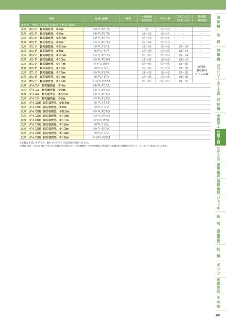 商品仕様(品番)販売一般鋼材SS400アルミ材ステンレスSUS304溝形鋼(傾斜面)-------※別途溝形鋼用ダイス必要t2t2〜t3t2〜t3t2〜t4t2〜t6t2〜t6t2〜t6t2〜t6t2〜t6t2〜t6t2〜t6t2〜t6t2〜t6t2〜t3t2〜t4t2〜t4t2〜t5t2〜t6t2〜t6t2〜t6t2〜t6t2〜t6t2〜t6t2〜t6t2〜t6t2〜t6----t3〜t4t3〜t4t3〜t4t3〜t4t3〜t6t3〜t6t3〜t6t3〜t6t3〜t6オグラHPC-156WDF用(S-YPJ156用)丸穴ポンチ替刃販売品Φ4㎜丸穴ポンチ替刃販売品Φ5㎜丸穴ポンチ替刃販売品Φ5.5㎜丸穴ポンチ替刃販売品Φ6㎜丸穴ポンチ替刃販売品Φ6.5㎜丸穴ポンチ替刃販売品Φ8㎜丸穴ポンチ替刃販売品Φ8.5㎜丸穴ポンチ替刃販売品Φ10㎜丸穴ポンチ替刃販売品Φ11㎜丸穴ポンチ替刃販売品Φ12㎜丸穴ポンチ替刃販売品Φ13㎜丸穴ポンチ替刃販売品Φ14㎜丸穴ポンチ替刃販売品Φ15㎜丸穴ダイスA替刃販売品Φ4㎜丸穴ダイスA替刃販売品Φ5㎜丸穴ダイスA替刃販売品Φ5.5㎜丸穴ダイスA替刃販売品Φ6㎜丸穴ダイスSB替刃販売品Φ6.5㎜丸穴ダイスSB替刃販売品Φ8㎜丸穴ダイスSB替刃販売品Φ8.5㎜丸穴ダイスSB替刃販売品Φ10㎜丸穴ダイスSB替刃販売品Φ11㎜丸穴ダイスSB替刃販売品Φ12㎜丸穴ダイスSB替刃販売品Φ13㎜丸穴ダイスSB替刃販売品Φ14㎜丸穴ダイスSB替刃販売品Φ15㎜HYPJ15PAHYPJ15PBHYPJ15PCHYPJ15PDHYPJ15PEHYPJ15PFHYPJ15PGHYPJ15PHHYPJ15PIHYPJ15PJHYPJ15PKHYPJ15PLHYPJ15PMHYPJ15AAHYPJ15ABHYPJ15ACHYPJ15ADHYPJ15SEHYPJ15SFHYPJ15SGHYPJ15SHHYPJ15SIHYPJ15SJHYPJ15SKHYPJ15SLHYPJ15SM※記載なきポンチダイス、長穴ポンチダイスは別途ご相談ください。※薄板(t2〜t3.2)及びアルミ材や鋼材の穴あけで、穴の精度やバリの軽減をご希望される場合はご相談ください。メーカーへ取次いたします。301